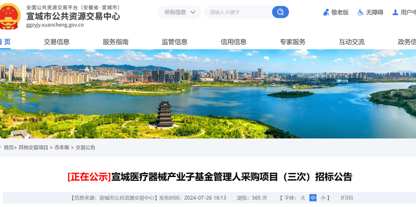 近日,宣城醫(yī)療器械產(chǎn)業(yè)子基金管理人采購項目(三次)招標公告發(fā)布。據(jù)悉,基金主要投資于非生物醫(yī)藥的醫(yī)療領域。以下為原文...