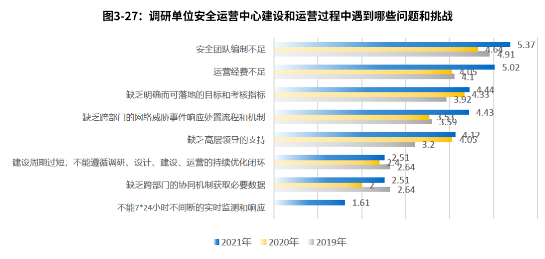 4.團(tuán)隊(duì)編制和經(jīng)費(fèi)不足依然是運(yùn)營中心建設(shè)的首要挑戰(zhàn)