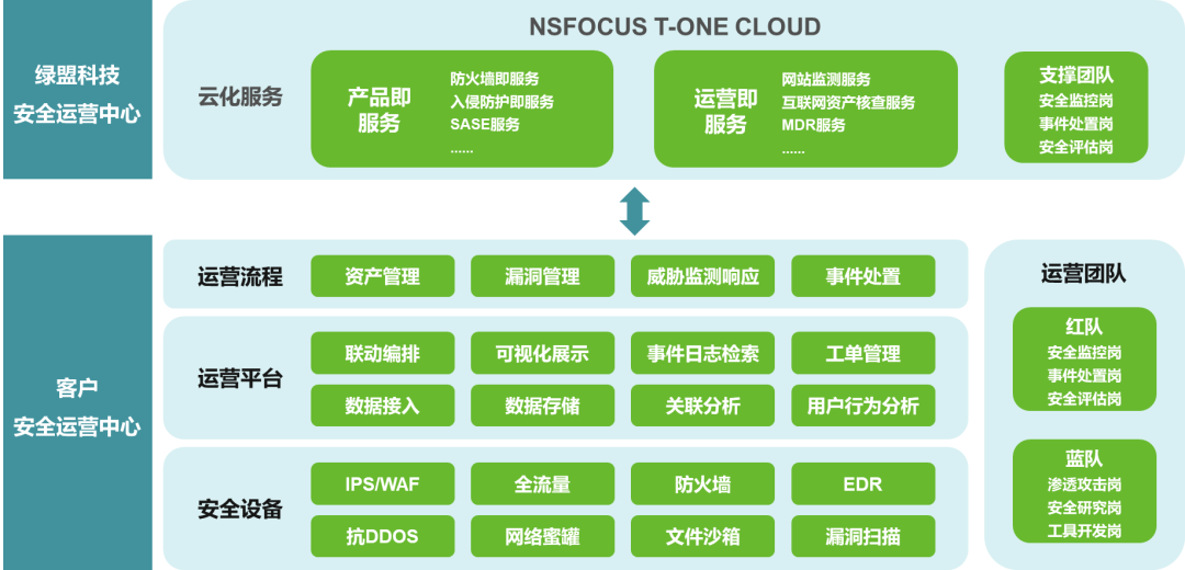 例如:安全運(yùn)營中心方案中,會引入綠盟T-ONE CLOUD云端能力,集約化的方式為客戶提供7*24小時威脅檢測與響應(yīng)、網(wǎng)站安全監(jiān)測等服務(wù),避免了本地投入大量人力開展相關(guān)工作,降低成本支出,提升服務(wù)能力,助力客戶成功。