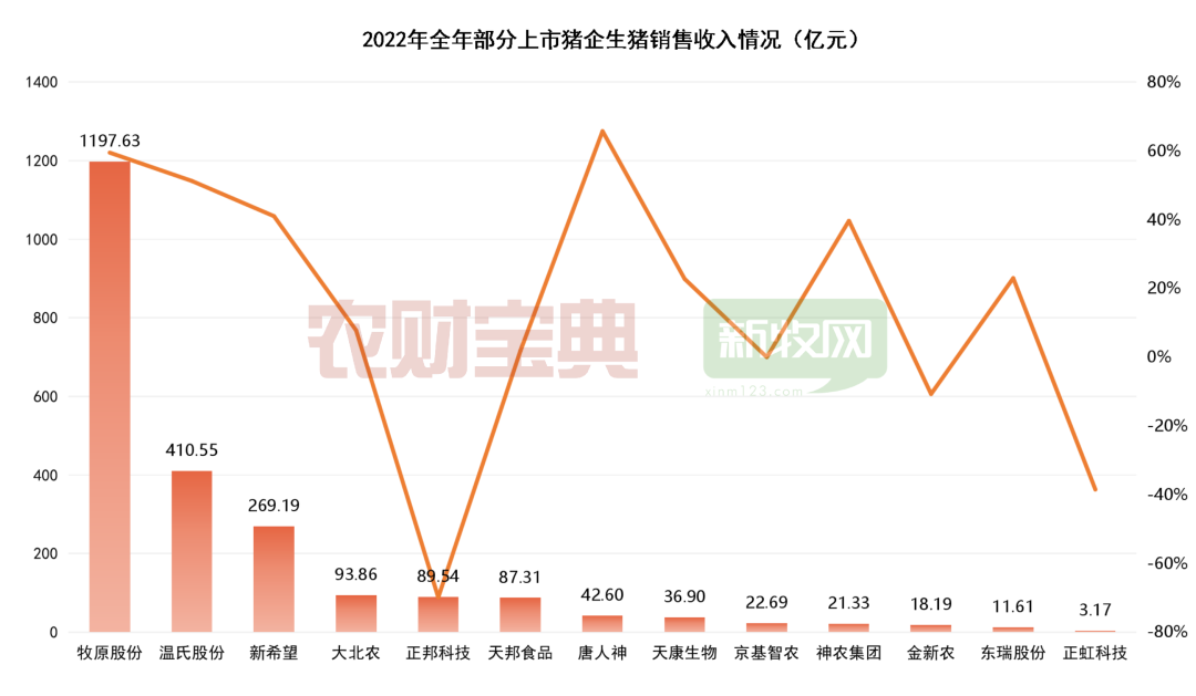 據(jù)新牧網(wǎng)記者統(tǒng)計(jì),2022年,京基智農(nóng)生豬銷售收入為22.69億元。