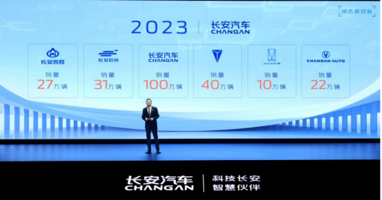 據(jù)董事長(zhǎng)朱華榮透露,2023年長(zhǎng)安汽車(chē)集團(tuán)銷(xiāo)售目標(biāo)為280萬(wàn)輛,其中長(zhǎng)安汽車(chē)100萬(wàn)輛,長(zhǎng)安歐尚31萬(wàn)輛,深藍(lán)40萬(wàn)輛,阿維塔10萬(wàn)輛,長(zhǎng)安凱程27萬(wàn)輛,海外22萬(wàn)輛。這一目標(biāo)在給公司一定壓力和挑戰(zhàn)的同時(shí),也將促使長(zhǎng)安汽車(chē)奮勇向前,一定程度上鎖定了未來(lái)業(yè)績(jī)?cè)鲩L(zhǎng)幅度,為不確定的資本市場(chǎng)市場(chǎng)增加了確定性。