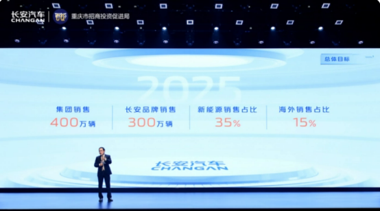 而在近日召開(kāi)的長(zhǎng)安汽車(chē)全球伙伴們大上,董事長(zhǎng)朱華榮又“官宣”了公司未來(lái)幾年的發(fā)展規(guī)劃:到2025年,力爭(zhēng)實(shí)現(xiàn)長(zhǎng)安汽車(chē)集團(tuán)銷(xiāo)售400萬(wàn)輛,其中,長(zhǎng)安品牌300萬(wàn)輛,新能源銷(xiāo)售占比35%,海外銷(xiāo)售占比15%;到2030年,力爭(zhēng)實(shí)現(xiàn)集團(tuán)銷(xiāo)售500萬(wàn)輛,其中,長(zhǎng)安品牌400萬(wàn)輛,新能源銷(xiāo)售占比60%以上,海外銷(xiāo)售占比30%。