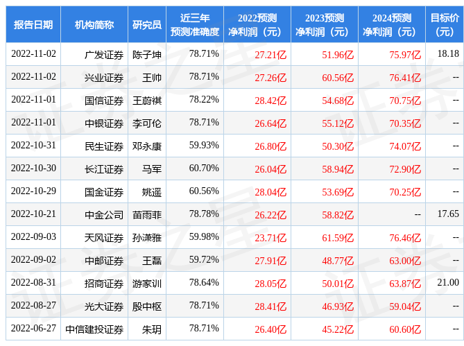 最新盈利預(yù)測明細(xì)如下: