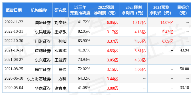 以下是詳細(xì)的盈利預(yù)測信息: