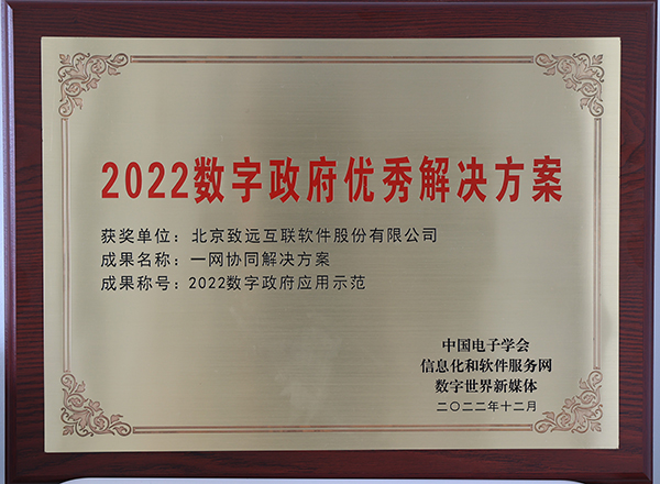 圖 2022數(shù)字政府優(yōu)秀解決方案獎(jiǎng)項(xiàng)證書
