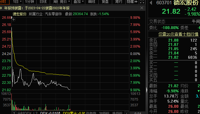 德宏股份在涉及新能源汽車概念后,股價自去年5月以來連續(xù)上漲,累計最高漲幅超過200%,今日為個股2023年首次跌停,截至昨日年內(nèi)漲幅為23.17%。
