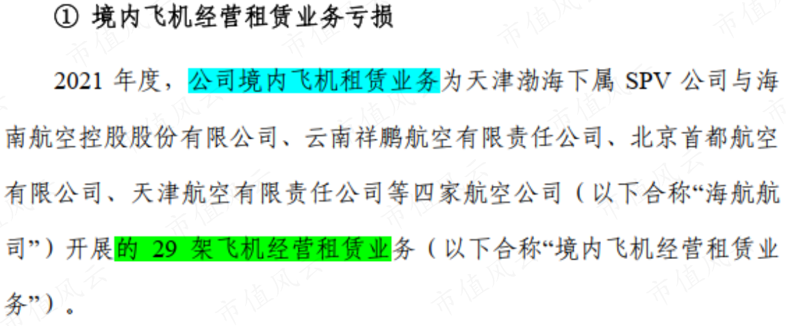 但有一個細(xì)節(jié)也不能忽略:根據(jù)渤海租賃2021年年報問詢回復(fù),其在境內(nèi)開展飛租業(yè)務(wù)的飛機29架,僅占當(dāng)年末飛機數(shù)量的3.0%。