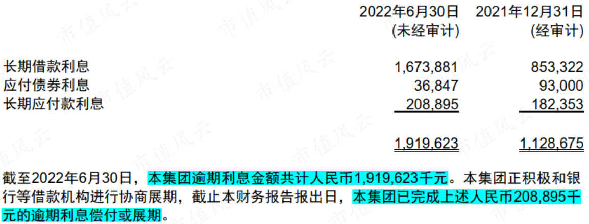 3、深陷債務(wù)危機,單違約利息近20億