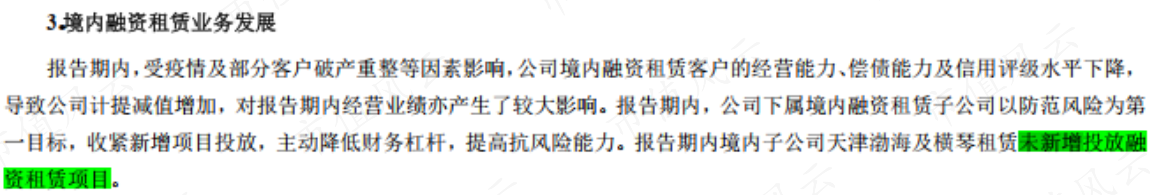 也就是說,如果有反轉(zhuǎn)希望的話,首先要排除的就是連新項目都不再投放的境內(nèi)融資租賃業(yè)務(wù)。