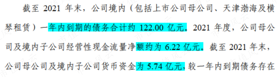 而當(dāng)年末僅一年內(nèi)到期的債務(wù)就高達(dá)122億元,根本沒法還。
