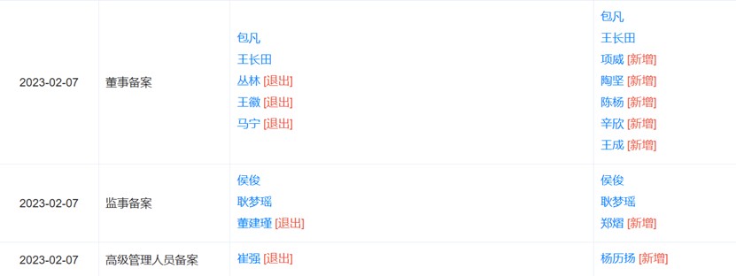 另外,又新增了5名董事,分別是:項(xiàng)威、陶?qǐng)?jiān)、陳楊、辛欣、王成;新增1名監(jiān)事,為鄭熠;新增1名高管,為楊歷揚(yáng)(財(cái)務(wù)負(fù)責(zé)人)。
