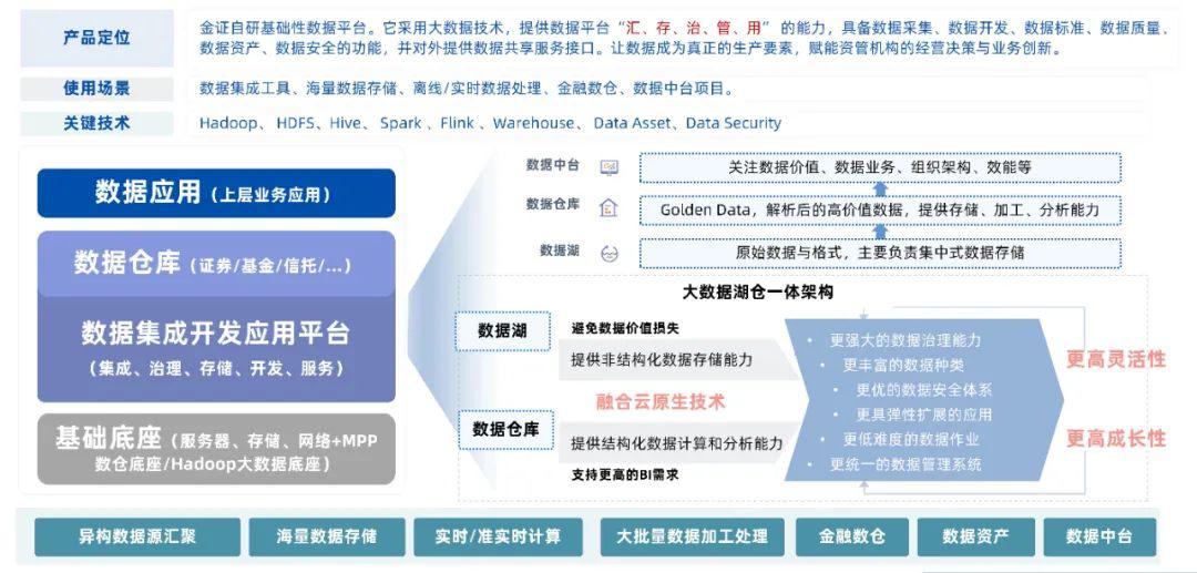 DIDA平臺(tái)是金證自研的基礎(chǔ)性通用數(shù)據(jù)平臺(tái),采用大數(shù)據(jù)技術(shù),提供數(shù)據(jù)平臺(tái)“匯、存、治、管、用” 能力,具備數(shù)據(jù)采集、數(shù)據(jù)開發(fā)、數(shù)據(jù)資產(chǎn)的功能,讓數(shù)據(jù)成為真正的生產(chǎn)要素,賦能金融企業(yè)的經(jīng)營(yíng)決策與業(yè)務(wù)創(chuàng)新。