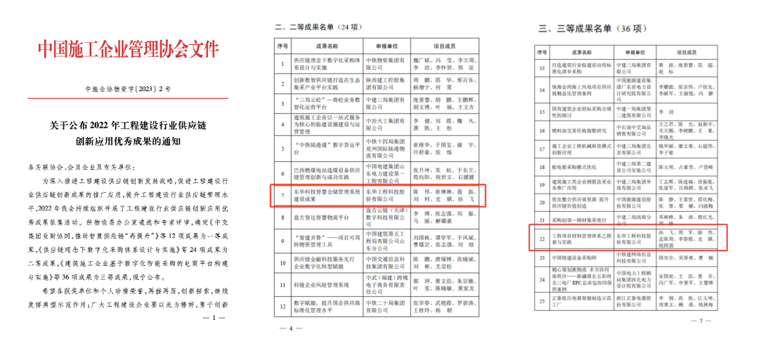 2月17日,中國(guó)施工企業(yè)管理協(xié)會(huì)公布了“2022年工程建設(shè)行業(yè)供應(yīng)鏈創(chuàng)新應(yīng)用優(yōu)秀成果”評(píng)選結(jié)果,東華科技(002140)申報(bào)的兩項(xiàng)成果獲獎(jiǎng)。其中,《東華科技智慧倉(cāng)儲(chǔ)管理系統(tǒng)建設(shè)成果》榮獲二等成果,《工程項(xiàng)目材料管理體系之探索與實(shí)踐》榮獲三等成果。