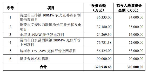 公告顯示,經(jīng)中國證監(jiān)會《關于核準晶科電力科技股份有限公司公開發(fā)行可轉(zhuǎn)換公司債券的批復》(證監(jiān)許可〔2021〕931號)核準,公司于2021年4月23日公開發(fā)行了3,000萬張可轉(zhuǎn)換公司債券,發(fā)行價格為每張100元,募集資金總額為人民幣3,000,000,000.00元,扣除各項發(fā)行費用后,實際募集資金凈額為2,971,776,415.09元,上述款項已于2021年4月29日全部到賬。天健會計師事務所(特殊普通合伙)對公司本次公開發(fā)行可轉(zhuǎn)換公司債券的資金到位情況進行了審驗,并于2021年4月30日出具了天健驗〔2021〕191號《驗證報告》。公司已對上述募集資金進行了專戶存儲。公司《公開發(fā)行可轉(zhuǎn)換公司債券募集說明書》披露的募集資金投資計劃如下: