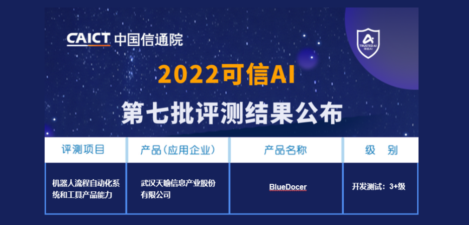 近日,中國信通院公布第七批“可信AI”評測結(jié)果,天喻BlueDocerRPA順利通過該測評,并獲得本次測評“3+級”,意味著天喻信息(300205)在RPA產(chǎn)品技術(shù)方面的研發(fā)實力已獲國家級認可,應(yīng)用成熟度已達到行業(yè)領(lǐng)先水平。
