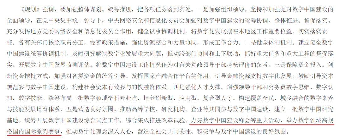 近日,中共中央、國務(wù)院印發(fā)《數(shù)字中國建設(shè)整體布局規(guī)劃》,提出筑牢可信可控的數(shù)字安全屏障,切實維護網(wǎng)絡(luò)安全,增強數(shù)據(jù)安全保障能力,并強調(diào)辦好數(shù)字中國建設(shè)峰會等重大活動,舉辦數(shù)字領(lǐng)域高規(guī)格國內(nèi)國際系列賽事,推動數(shù)字化理念深入人心,營造全社會共同關(guān)注、積極參與數(shù)字中國建設(shè)的良好氛圍。