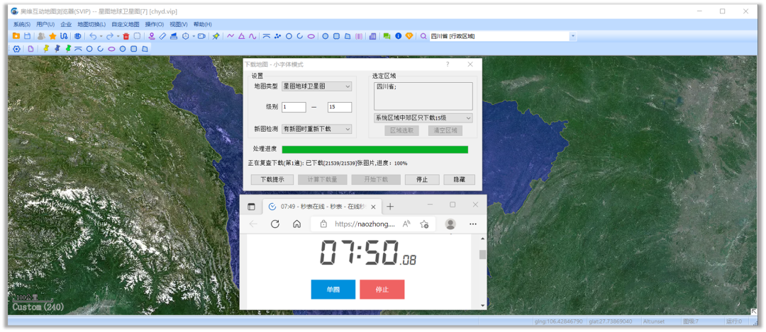 同時(shí),小編選取星圖地球數(shù)據(jù)云離線下載了整個(gè)四川范圍內(nèi)1-15級(jí)的地圖瓦片數(shù)據(jù)。