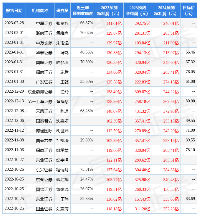 最新盈利預(yù)測明細(xì)如下: