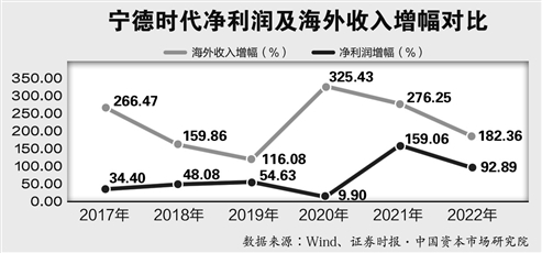 從財(cái)務(wù)數(shù)據(jù)看,獲MSCI領(lǐng)先評(píng)級(jí)前三年(2017~2019),寧德時(shí)代歸母凈利潤(rùn)平均增幅低于20%,海外業(yè)務(wù)收入增幅均值180.8%;獲領(lǐng)先評(píng)級(jí)以來(lái)(2020~2022),公司歸母凈利潤(rùn)平均增幅85%以上,海外業(yè)務(wù)收入平均增幅261.34%。