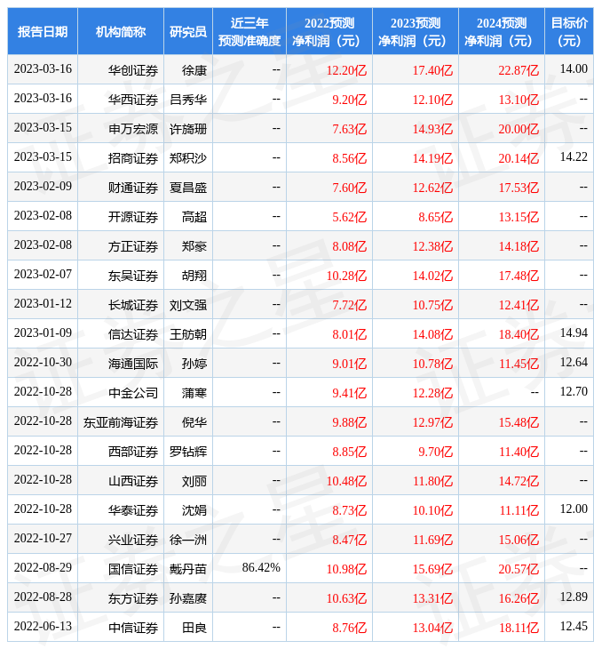 最新盈利預(yù)測明細如下: