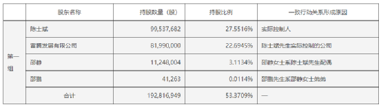 陳士斌和邵靜實際上一致行動人,兩人為夫妻關系,加上富騰發(fā)展和邵靜弟弟邵鵬的股份,陳士斌夫婦控制的股份比例為53.37%。