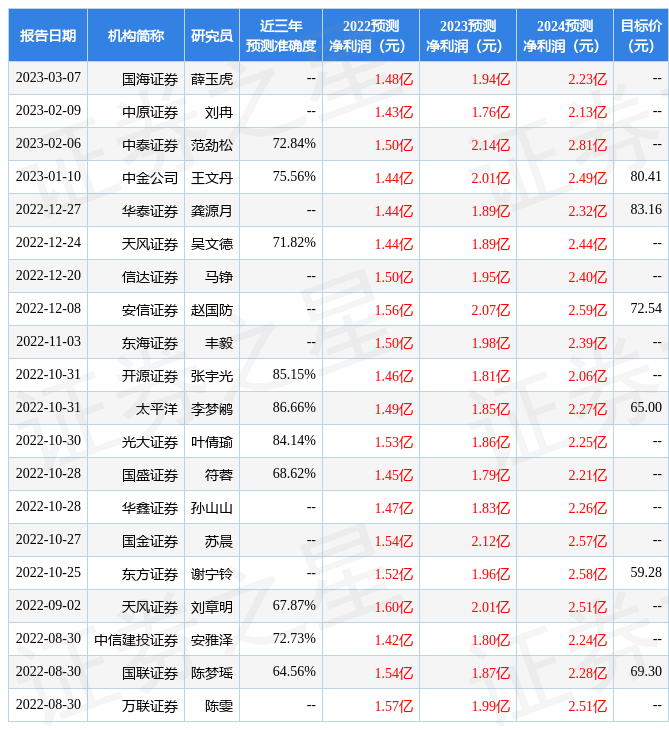 最新盈利預(yù)測明細如下: