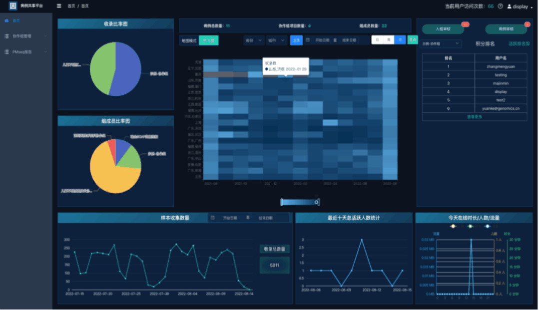 PM Online線上數(shù)據(jù)管理系統(tǒng)集成了PMseq 自動(dòng)化病原分析數(shù)據(jù)平臺,使得病原鑒定組學(xué)數(shù)據(jù)在中心本地化集中存儲(chǔ),實(shí)現(xiàn)用戶在線授權(quán)訪問,可以協(xié)助醫(yī)院實(shí)現(xiàn)病原組學(xué)檢測數(shù)據(jù)管理、病原統(tǒng)計(jì)、檢出頻率、病原譜和時(shí)空分布等統(tǒng)計(jì)分析功能;并且支持?jǐn)?shù)據(jù)共享合作,臨床和基因組學(xué)科學(xué)研究,可為醫(yī)院及疾控等機(jī)構(gòu)的大數(shù)據(jù)分析與再挖掘提供強(qiáng)有力的技術(shù)平臺支撐。