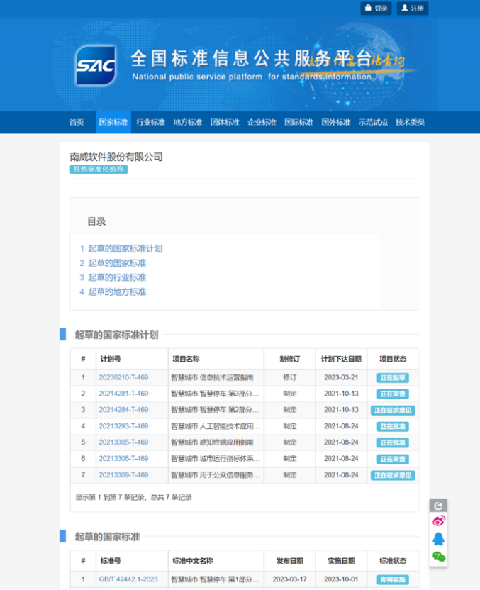 在本課題項目三年任務(wù)執(zhí)行過程中,集團(tuán)共參與其中6項智慧城市國家標(biāo)準(zhǔn)研制、5項智慧城市國家/國際標(biāo)準(zhǔn)試驗驗證工作,并報送5個試點應(yīng)用示范項目、7個智慧城市指數(shù)庫及檢測服務(wù)報告編制、4項行業(yè)報告編制工作,以南威智慧賦能,大力推動智慧城市的建設(shè)跨入新的發(fā)展階段。