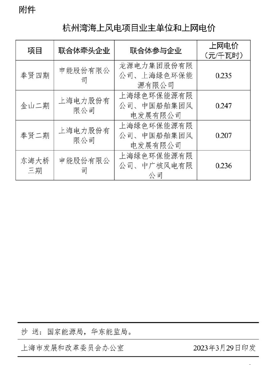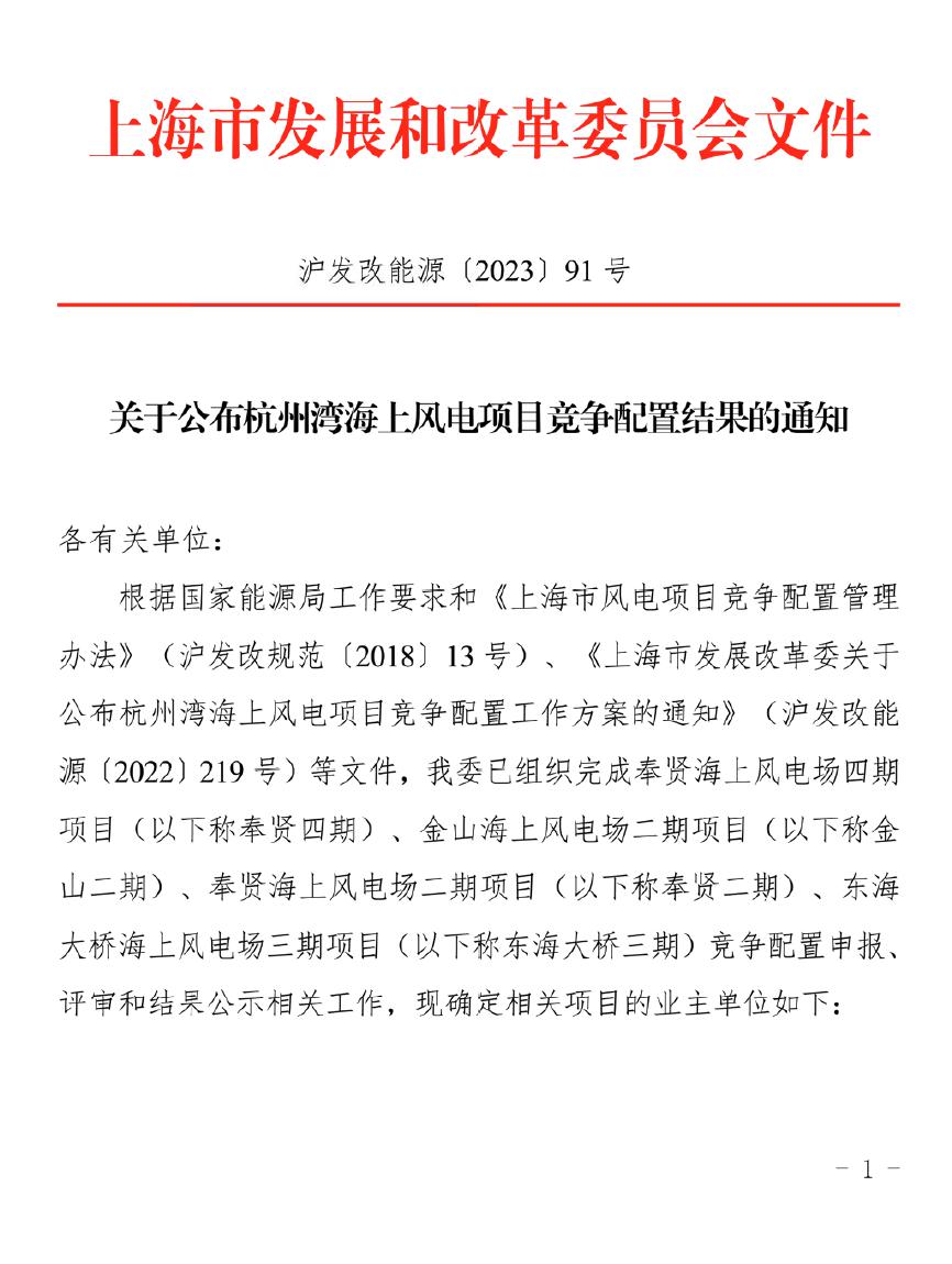 近日,上海市發(fā)改委公布了杭州灣海上風(fēng)電項目競爭配置結(jié)果。公司聯(lián)合體成功獲得奉賢海上風(fēng)電場四期項目(“奉賢四期”)、東海大橋海上風(fēng)電場三期項目(“東海大橋三期”)競爭性配置建設(shè)指標(biāo)。