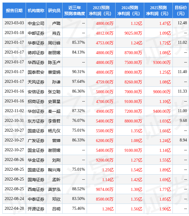 數(shù)據(jù)中心根據(jù)近三年發(fā)布的研報數(shù)據(jù)計算,天風(fēng)證券(601162)孫謙研究員團隊對該股研究較為深入,近三年預(yù)測準(zhǔn)確度均值高達97.64%,其預(yù)測2023年度歸屬凈利潤為盈利4759萬,根據(jù)現(xiàn)價換算的預(yù)測PE為67.2。