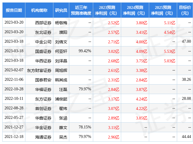 數(shù)據(jù)中心根據(jù)近三年發(fā)布的研報(bào)數(shù)據(jù)計(jì)算,國(guó)盛證券何亞軒研究員團(tuán)隊(duì)對(duì)該股研究較為深入,近三年預(yù)測(cè)準(zhǔn)確度均值高達(dá)99.42%,其預(yù)測(cè)2023年度歸屬凈利潤(rùn)為盈利3.02億,根據(jù)現(xiàn)價(jià)換算的預(yù)測(cè)PE為26.95。