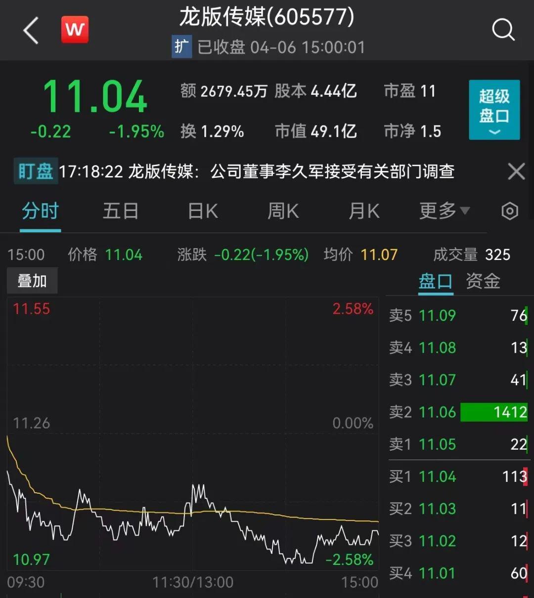 龍版?zhèn)髅?日盤中一路走低,最后收報11.04元,總市值不足50億元。
