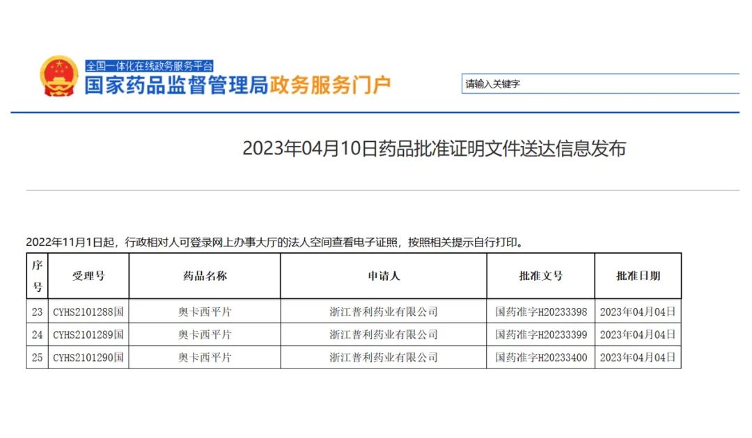 4月10日,浙江普利藥業(yè)收到國(guó)家藥監(jiān)局簽發(fā)的普利舒奧 奧卡西平片上市許可,視同通過(guò)仿制藥一致性評(píng)價(jià),成為國(guó)內(nèi)本品種首家過(guò)評(píng)企業(yè)。