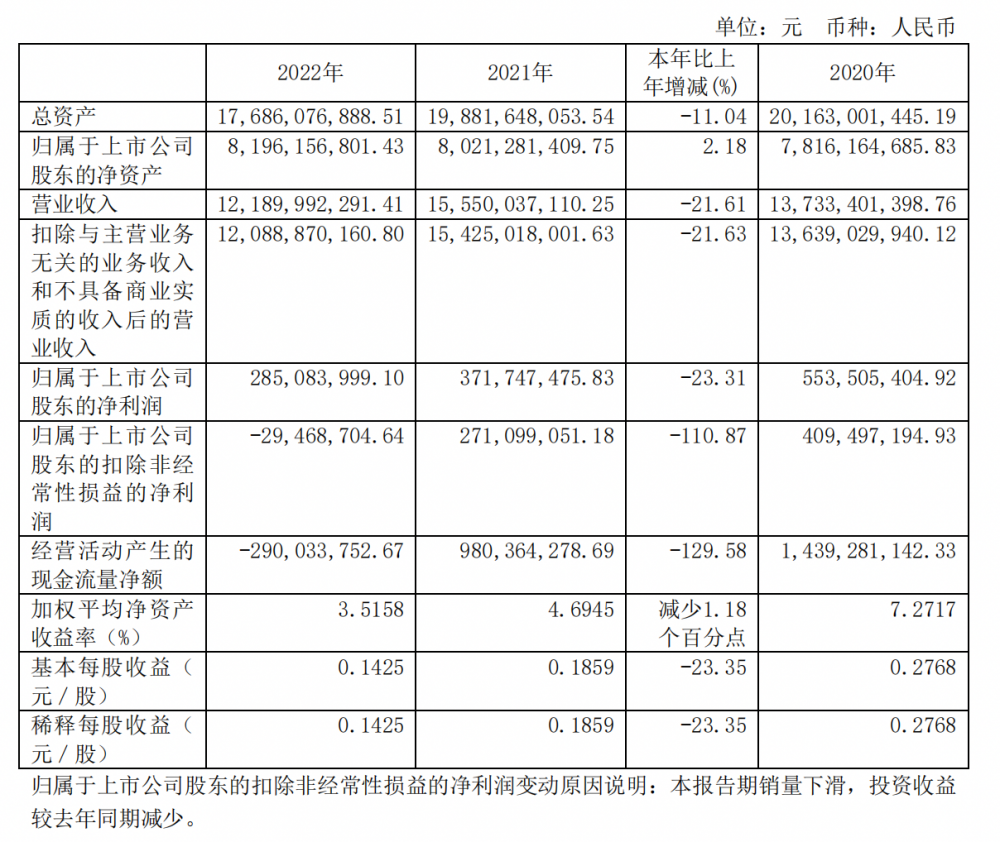 對于扣非后凈利潤大幅下滑,東風(fēng)汽車在財(cái)報(bào)中指出,受宏觀經(jīng)濟(jì)下行的影響,2022 年商用車市場需求收縮,全年銷量大幅下滑;同時(shí),投資收益較去年同期減少。