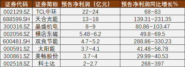 部分光伏A股上市公司一季報預告 制圖: