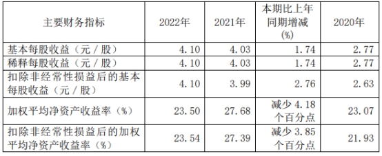北京4月17日訊片仔癀(600436)(600436.SH)上周五晚間披露的2022年年度報告顯示,去年,公司實現(xiàn)營業(yè)收入86.94億元,同比增長8.38%;歸屬于上市公司股東的凈利潤24.72億元,同比增長1.66%;歸屬于上市公司股東的扣除非經(jīng)常性損益的凈利潤24.76億元,同比增長2.89%;經(jīng)營活動產(chǎn)生的現(xiàn)金流量凈額為68.73億元,同比增1,386.79%;加權平均凈資產(chǎn)收益率為23.50%,同比減少4.18個百分點。