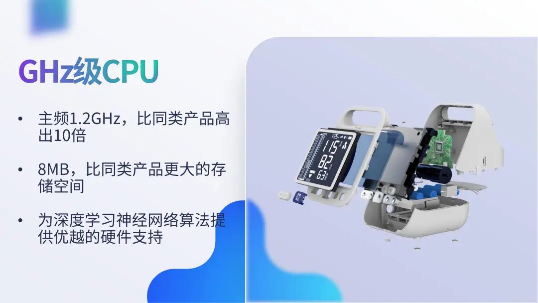 漢王電子血壓計,采用雙傳感器模式,讓采集到的血壓信號更加優(yōu)質(zhì)。搭載GHz級的CPU,1.2G的主頻以超出同類產(chǎn)品數(shù)倍的性能,為漢王自研深度學習神經(jīng)網(wǎng)絡算法提供優(yōu)越的硬件支持,可對測量結(jié)果進行深度優(yōu)化,在柯氏音法的基礎之上讓血壓檢測結(jié)果更加準確。