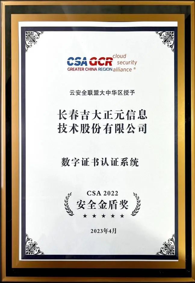 會上,吉大正元(003029)(003029)“數(shù)字證書認(rèn)證系統(tǒng)”成功獲評“CSA 2022安全金盾獎”,該獎項旨在表彰安全產(chǎn)品或安全服務(wù)具備核心競爭力,能夠解決當(dāng)前行業(yè)領(lǐng)域亟需解決的主要問題,在相關(guān)領(lǐng)域占據(jù)重要的市場份額,且具備一定創(chuàng)新性,并得到業(yè)界認(rèn)可,是相關(guān)安全領(lǐng)域的佼佼者。