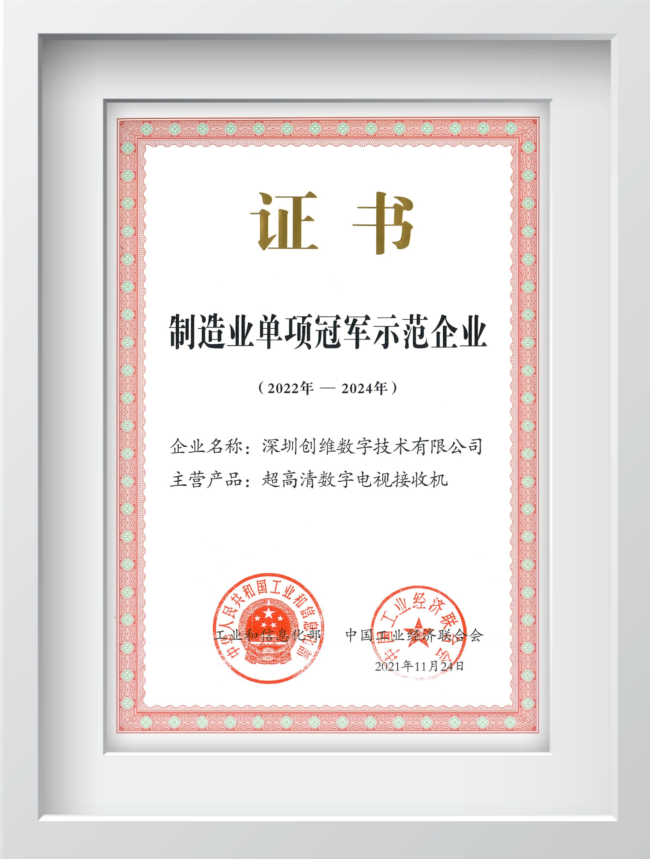 隨著國際市場布局推進(jìn),創(chuàng)維數(shù)字海外業(yè)務(wù)也逐漸實現(xiàn)了本地化人員配置、供應(yīng)鏈、生產(chǎn)制造、測試品控、銷售供應(yīng)、售后服務(wù)的全流程標(biāo)準(zhǔn)化,成為了全球行業(yè)內(nèi)擁有最完善解決方案的主流系統(tǒng)集成供應(yīng)商之一,實現(xiàn)了數(shù)字電視機頂盒供應(yīng)量全球第一,并因此榮獲國家工業(yè)和信息化部、中國工業(yè)經(jīng)濟聯(lián)合會頒發(fā)的“制造業(yè)單項冠軍示范企業(yè)”稱號。
