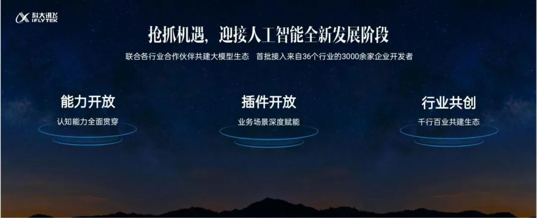 目前,訊飛開放平臺已經(jīng)開放了560項(xiàng)AI能力,并聚集了超過500萬生態(tài)合作伙伴。劉慶峰宣布,首批來自36個(gè)行業(yè)的3000余家企業(yè)開發(fā)者將接入星火大模型,聯(lián)合各行業(yè)合作伙伴共建大模型“星火”生態(tài)。