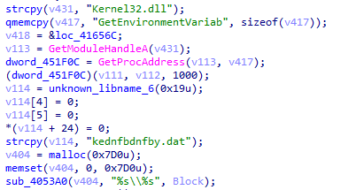 5、使用SetWindowsHookExW注冊鍵盤鉤子,將捕獲到的鍵盤記錄以文本的方式保存在%temp%目錄下的kednfbdnfby.dat文件中。