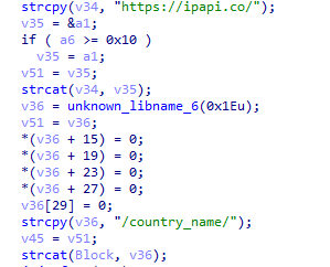 ③將上一步獲取到的外網(wǎng)IP地址在(api.iplocation.net,ipapi.co等)Web服務中查詢所屬國家的名稱。