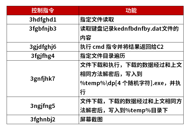④線程sub_4090A0主要接收服務器下發(fā)的控制指令,執(zhí)行相應的操作。