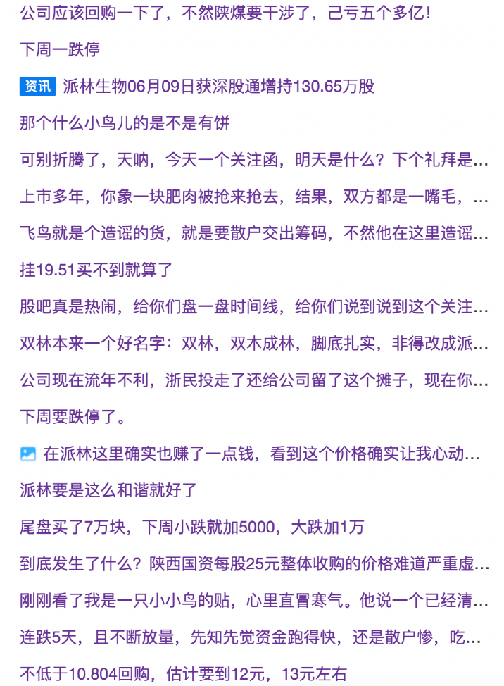 不少股民討論派林生物備忘錄一事,并對(duì)股權(quán)事項(xiàng)心存擔(dān)憂。