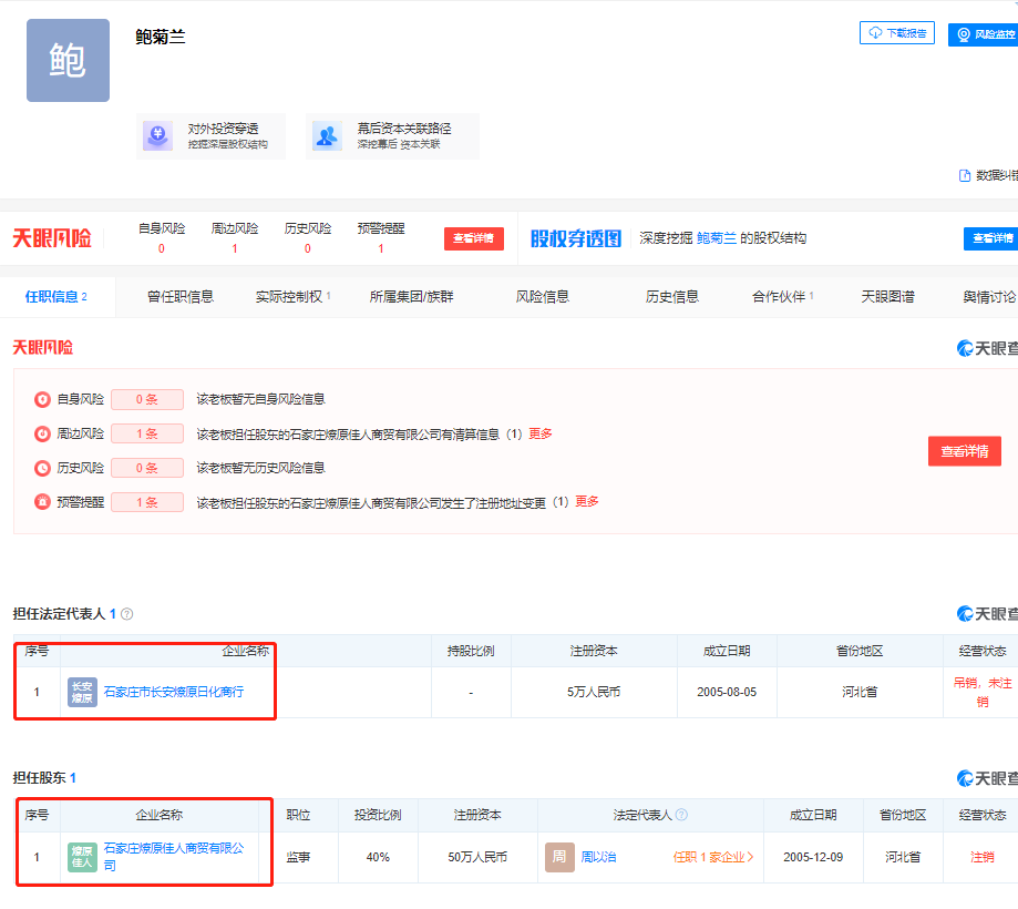 注意到,珀萊雅在公告中提到的鮑菊蘭、方玉占或與方玉友以及珀萊雅現(xiàn)任董事長(zhǎng)侯軍呈曾在名稱相似的公司任職。天眼查顯示,有同樣名叫“鮑菊蘭”的人士曾擔(dān)任石家莊市長(zhǎng)安燎原日化商行、石家莊燎原佳人商貿(mào)有限公司的法人和股東。