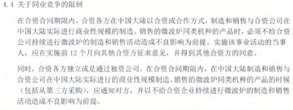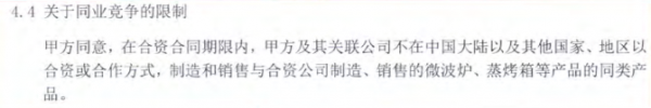 (松下微波爐修改前的合資合同中同業(yè)競爭限制條款)