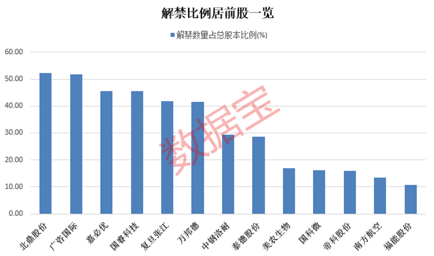 數(shù)據(jù)寶統(tǒng)計,下周將要解禁的這57只股票,6月以來股價平均上漲1.64%;7股月內(nèi)股價漲幅超10%。