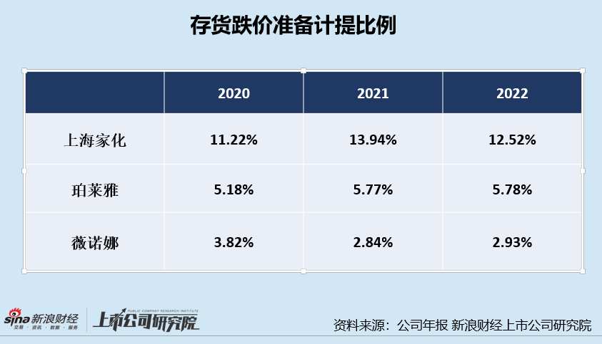 對(duì)比同行,我們發(fā)現(xiàn)貝泰妮的存貨跌價(jià)比例顯著低于行業(yè)可比公司。2020-2022年,上海家化存貨跌價(jià)準(zhǔn)備計(jì)提比例分別為11.22%、13.94%、12.52%,珀萊雅存貨跌價(jià)準(zhǔn)備計(jì)提比例分別為5.18%、5.77%、5.78%,而同期貝泰妮的存貨跌價(jià)準(zhǔn)備計(jì)提比例卻僅為3.82%、2.84%、2.93%,且有進(jìn)一步下降趨勢。