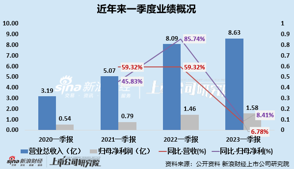 疫情放開后,貝泰妮業(yè)績?cè)鲩L的腳步卻變緩了。2021-2023年一季度,貝泰妮營收分別為5.07億元、8.09億元、8.63億元,分別同比增長59.32%、59.32%、6.78%;歸母凈利潤分別為0.79億元、1.46億元、1.58億元,分別同比增長45.83%、85.74%、8.41%。由此可見,進(jìn)入2023年后貝泰妮營收和歸母凈利潤的增長率均出現(xiàn)較大幅度下滑。