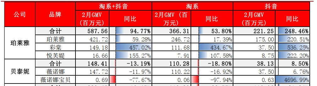 除此之外,貝泰妮核心品牌薇諾娜在2023年上半年多個(gè)月淘系GMV下滑。據(jù)首創(chuàng)證券研報(bào)數(shù)據(jù)顯示,2023年2月貝泰妮旗下核心品牌薇諾娜天貓+抖音平臺(tái)銷售額為2.23億元,同比下降13.19%,其中淘系平臺(tái)銷售額1.48億元,同比下降11.97%;2023年5月薇諾娜淘系銷售額為0.97億元,同比下降了33.73%。